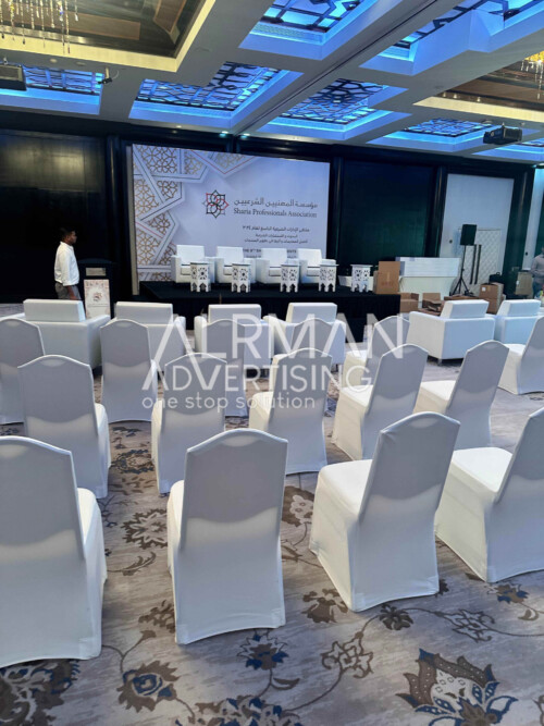 We do event works which includes wall brandings, signages, LED lights,Stage & backdrop setups, Marketing collateral etc.